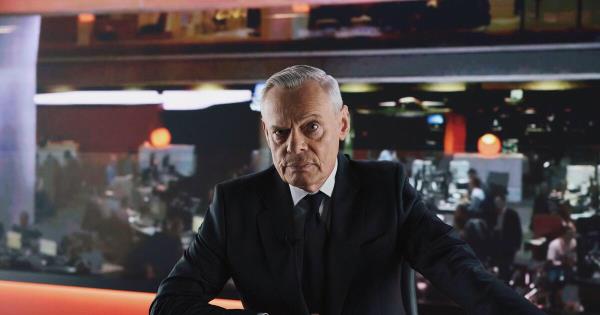 但在3月24日周二晚间,爱德华兹竟重回荧幕,在他坐镇数十年的深夜新闻时段播报新闻。原来这是演员马丁·克鲁尼斯在第五频道纪录片剧集《权力:休·爱德华兹的坠落》中扮演的他,伦敦运河畔的新闻演播室1:1复刻了BBC主播台。