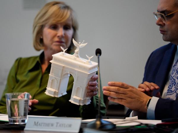 今年一月,他曾告诉记者希望这座拱门成为“史上最大”。委员会在审查更新设计方案后,仍需对最终批准进行投票。
