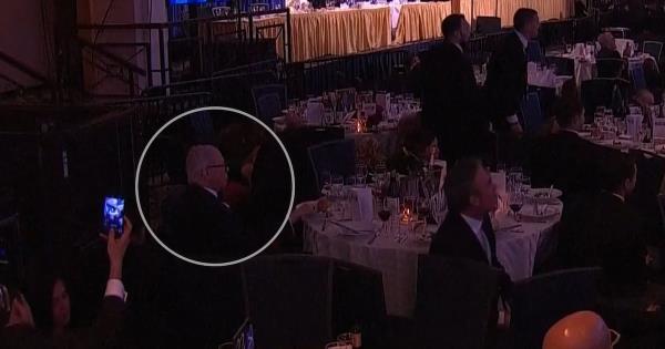 在特勤人员高喊"趴下"的吼声和尖叫声中,镜头捕捉到一位中年男子的从容身影格外醒目。他坐在靠近会场前排的桌旁,既未躲藏也无惊慌,反而用叉子慢条斯理地挑起配餐前的芝士送入口中,咀嚼间仿佛周遭的枪声只是背景音。这份镇定让他被网友戏称为"沙拉哥"。